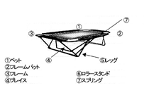 | スポレク祭で使用されるトランポリンはミドルサイズ・トランポリン(シャトル競技検定品・普及検定品)で、下記のようなものを使用します。 | |||||||||||